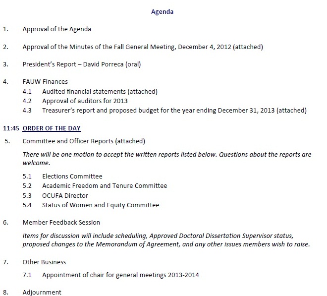 an. FAUW members have some further leverage through Articles 15, 16, and 17 of the Memorandum of Agreement. Keep in mind, however, that the province does not respect such agreements or existing legislation very much lately.