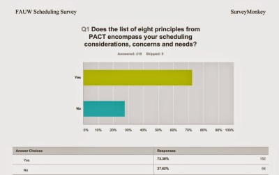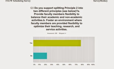 The Provost’s Advisory Committee on Timetabling is considering a list of principles that will govern the functioning of the new scheduling system going forward. FAUW recently conducted a survey on timetabling and more than 200 members responded! Here are the overall results: