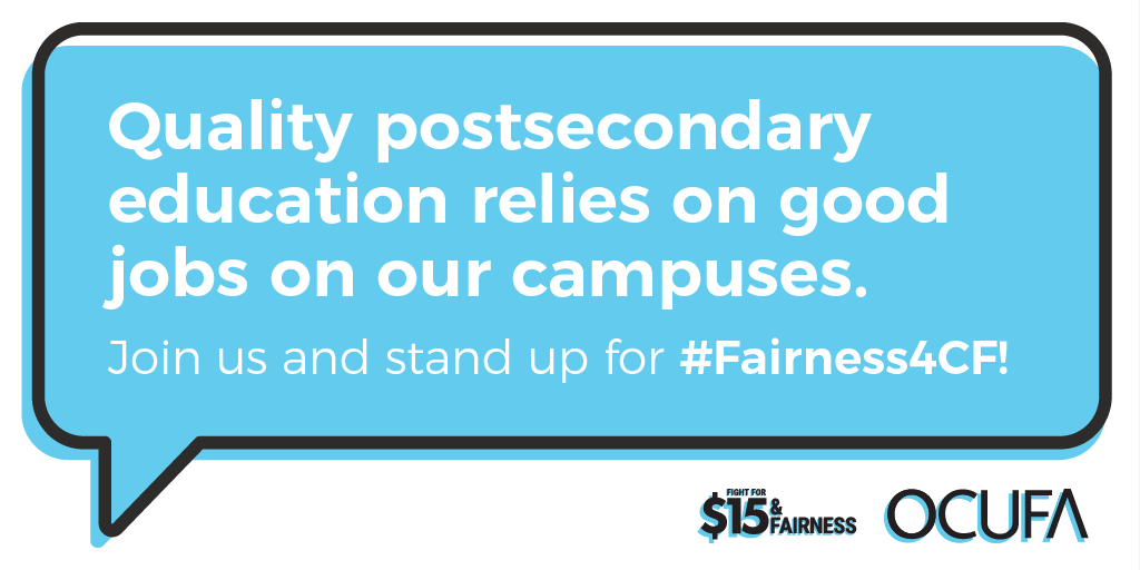- The number of courses taught by contract faculty in Ontario has doubled since 2000. We need to set postsecondary education in Ontario on a new path. Postsecondary instructors and researchers deserve fair pay, job security and access to benefits. #Fairness4CF #MakeItFair #15andFairness