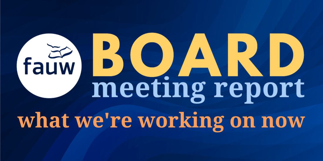 Here’s what we talked about at the last meeting of the FAUW Board of Directors: